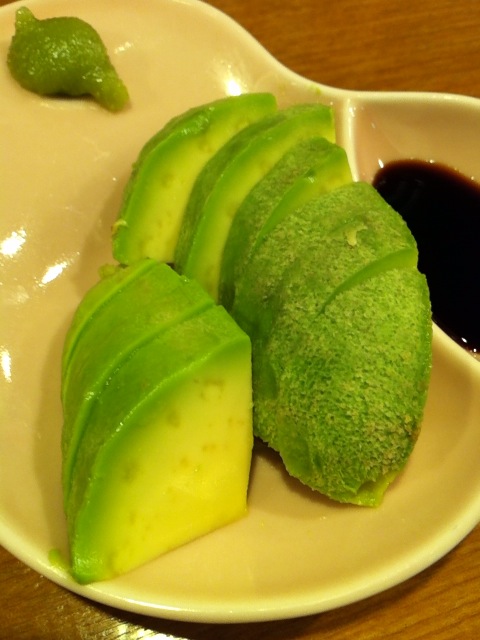 アテは”アボガド わさび醤油(100円)”。
