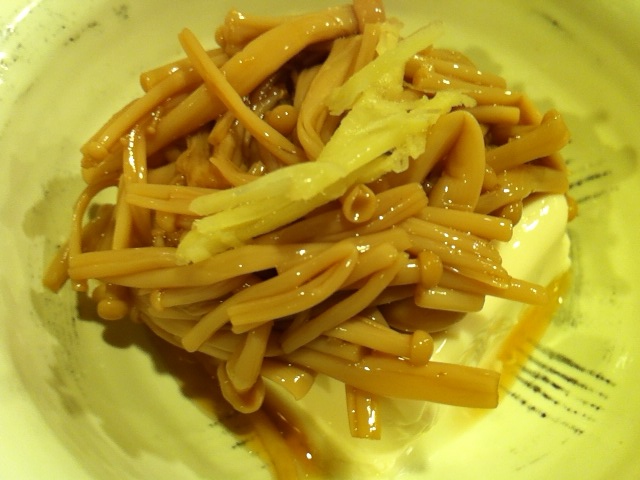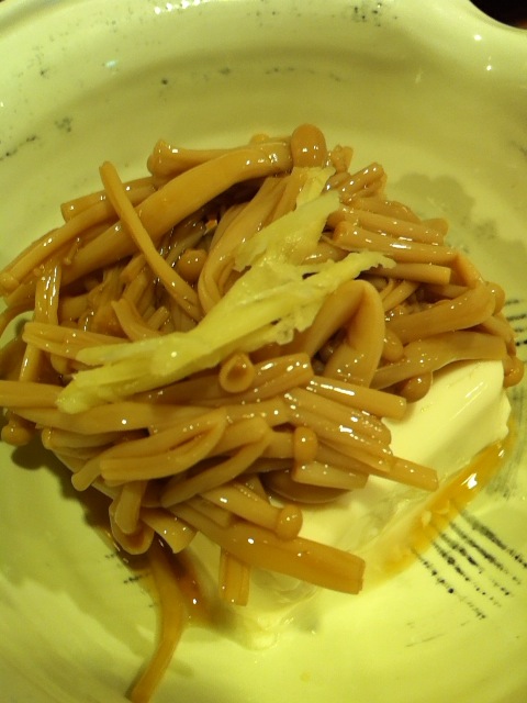 冷奴の上にたっぷりエノキ。ちょいちょい摘まむにはいい感じ。