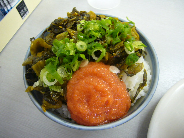 ランチセットの”高菜明太ごはん”は,高菜も明太もたっぷりでボリュームも十分。今日はこれを食べてしまい替え玉できずorz