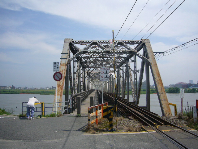 歩行者と鉄道の併用橋。城東貨物線が単線のため,余った半分を歩道として利用してます。すぐ横を列車が通過するので結構迫力あります。なんかつぎはぎのある木製橋も微妙に怖い(^^;