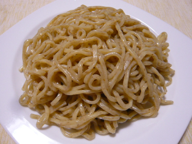 少々湯切りに手間取ってしまい茹で時間が6分程に。