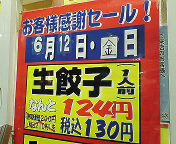 餃子の王将(天四店)で生餃子のセールをしていたので・・・