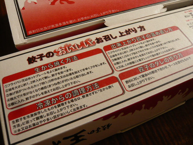 生餃子は1人前130円で,別途箱代(2人前毎に10円)が必要。