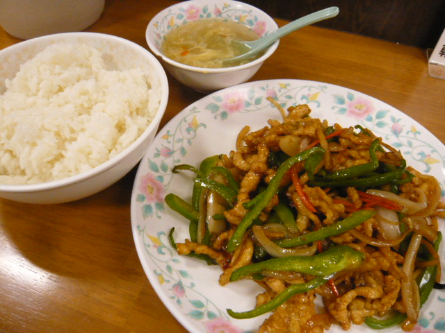 青椒肉絲 豚肉とピーマンの細切り炒め定食。