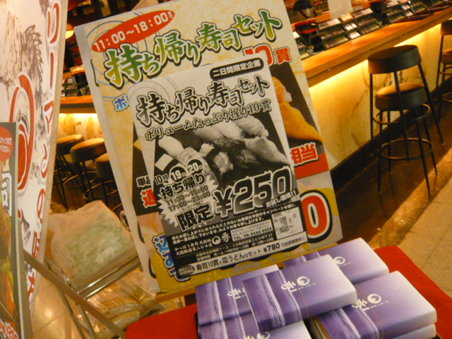 "お持ち帰り寿司セット"が250円になるとの事。
