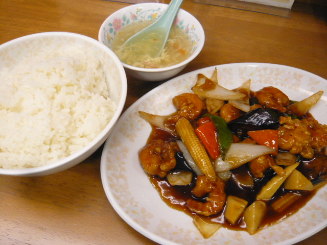 海老と五目野菜の甘酢煮定食。