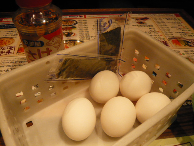 卓上には食べ放題の卵・海苔・ふりかけ・漬物も。