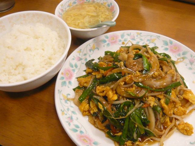 豚肉とニラと玉子の炒め定食。
