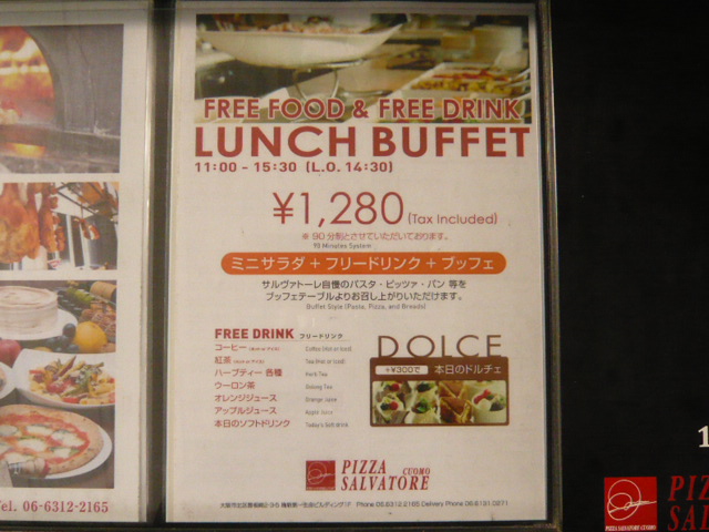 今回見ていた感じでは,ピッツァが4種,パスタが5種ってところかな。