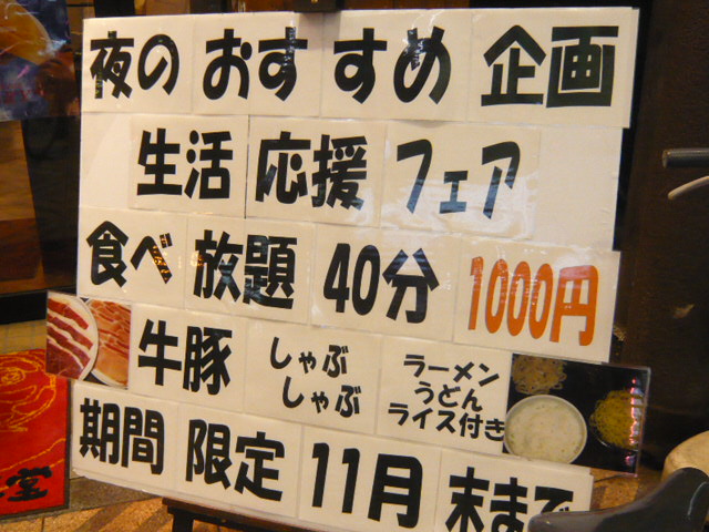 40分とはいえ,しゃぶしゃぶが食べ放題1000円ってお値打ちだな。