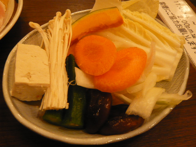 野菜バーに並ぶのは,白菜・玉葱・椎茸・南瓜・さつま芋・オクラなど。