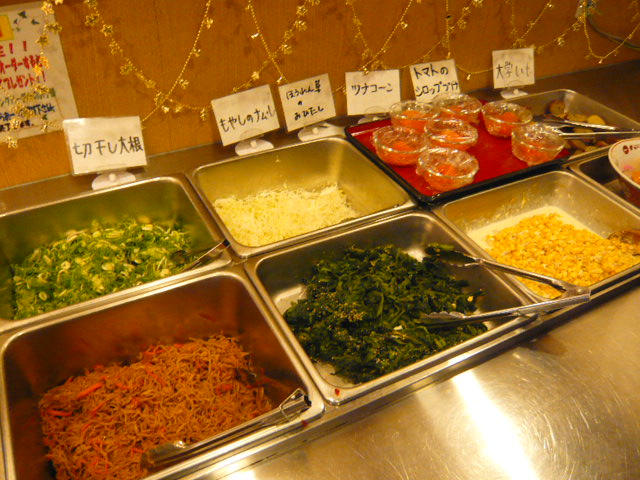 こってりラーメンに,サイドメニューがバイキングで。