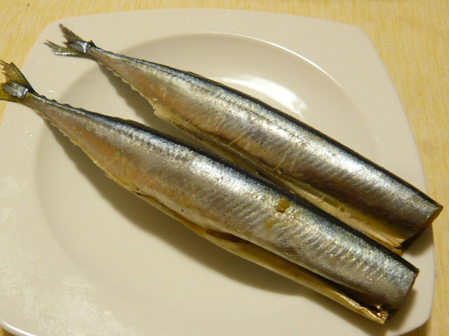 頭と内臓が取られた"さんま"が2尾。