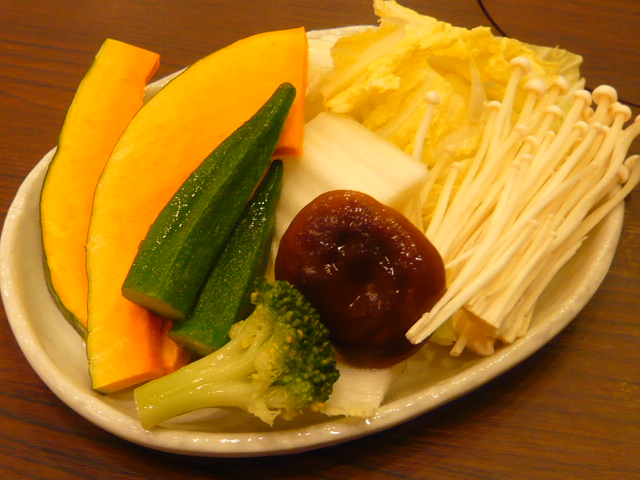野菜バーから白菜・椎茸・南瓜・おくら・えのき・人参などなど。