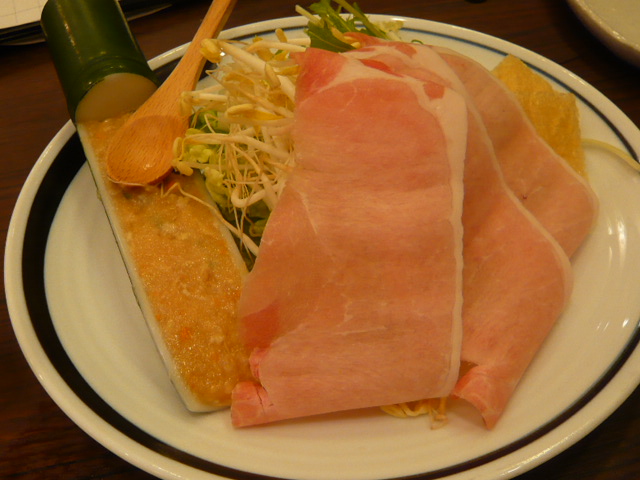 具材は,基本セットの豚しゃぶ・つくね・あげ・もやし・白菜などに,