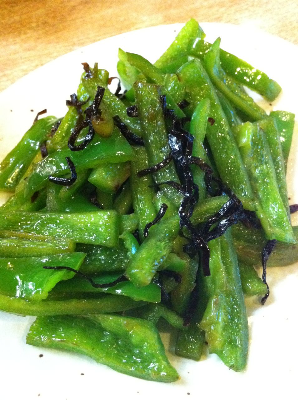 細切りピーマンと塩昆布を炒めたシンプルなアテ。