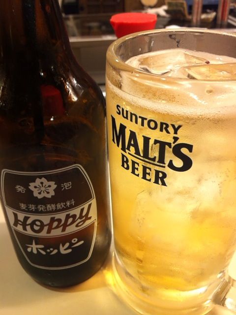 元祖立ち飲み屋@川崎で、サーモン刺身+ホッピーほか。