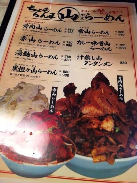 山らーめんは7種。骨肉、赤、湯麺、黒坦々、雪、カレー味噌、汁無し