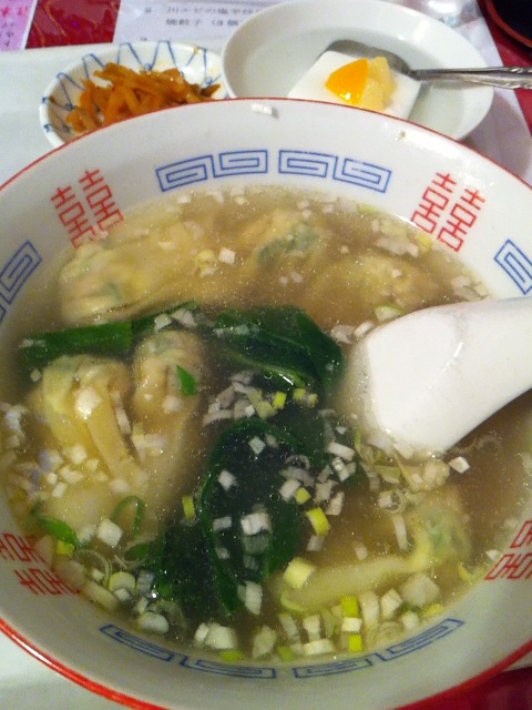 あっさり清湯スープにプリプリワンタン。