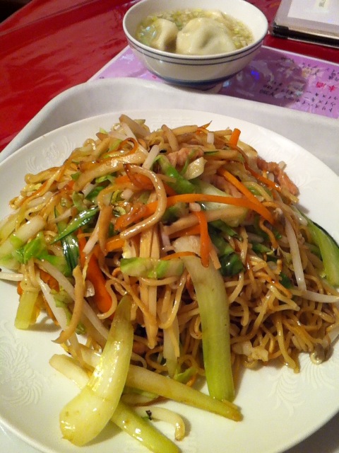 養生坊@西横浜で、上海風焼そば+ワンタン。