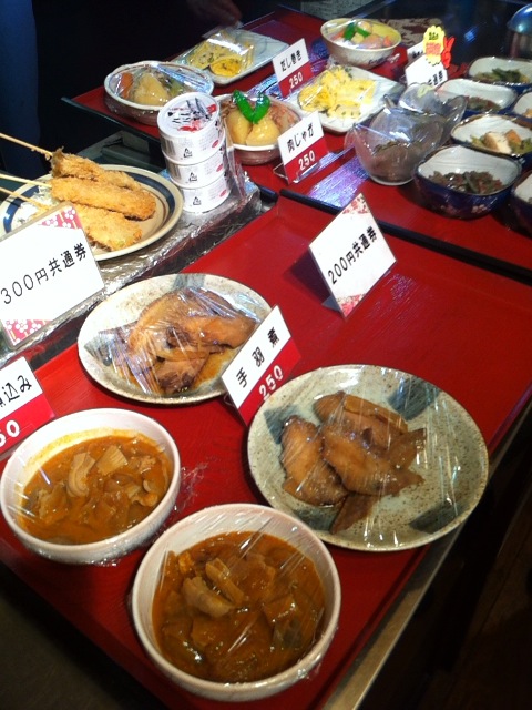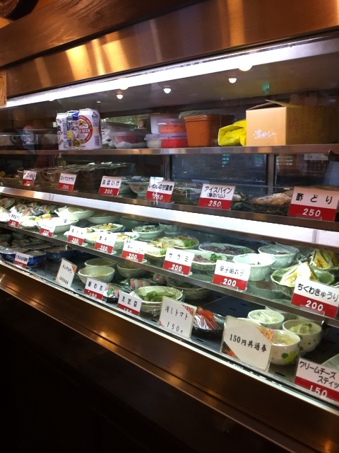 厨房前のカウンターや冷蔵ケースにはずらっとアテが準備万端。