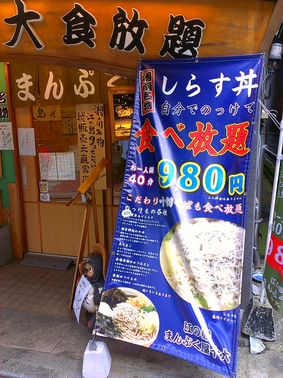 まんぷく屋十大@江ノ島で、釜揚げしらす食べ放題+生しらす。