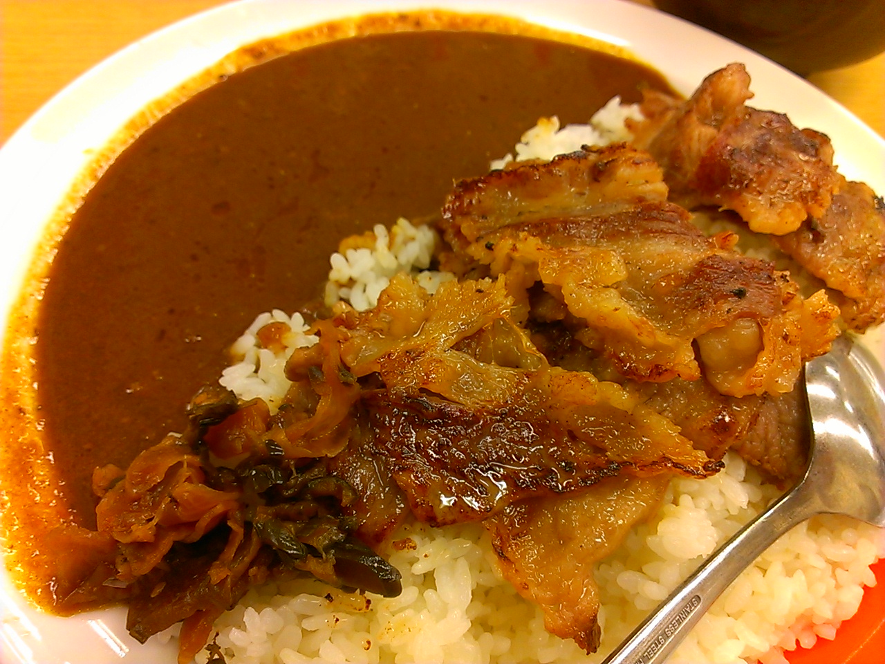 ピリッとさらさらカレーにカルビ焼肉がたっぷり。