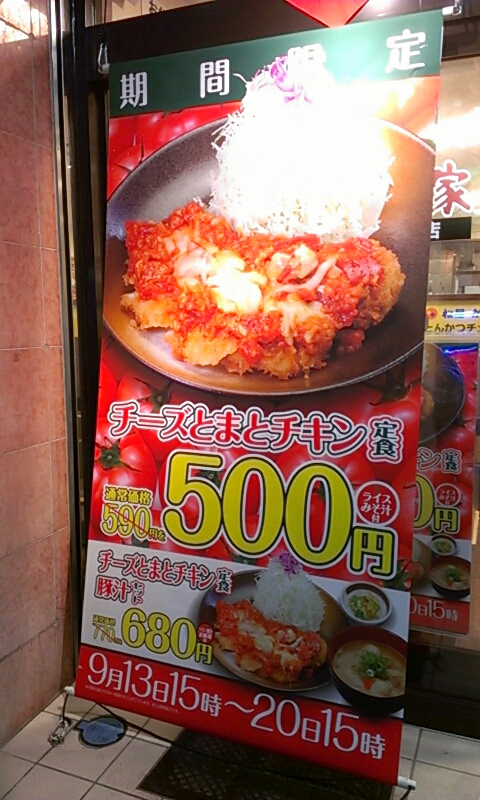 チーズとまとチキン定食500円20日15時まで。