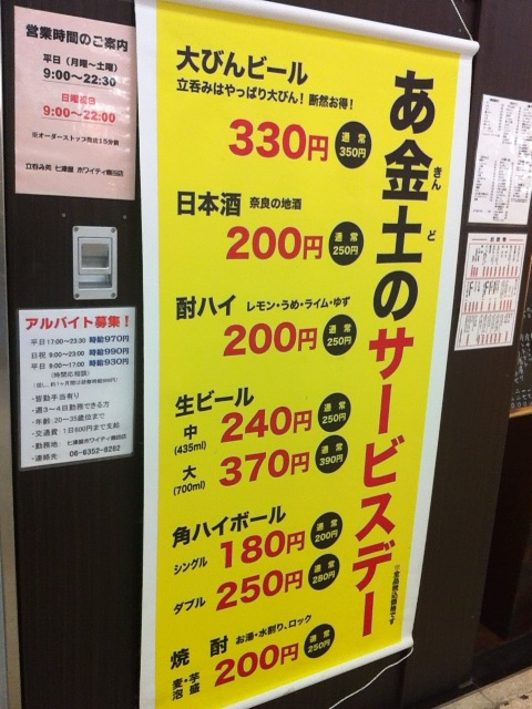 大阪駅前地下街、ホワイティ梅田にある立ち飲み”七津屋”。