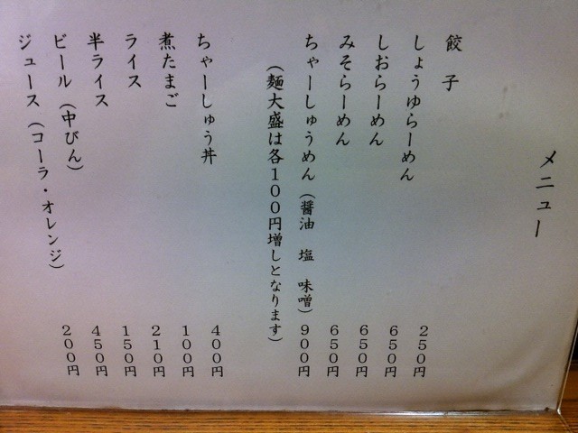 ”しおらーめん(650円)”に”餃子2人前(250円×2)”。