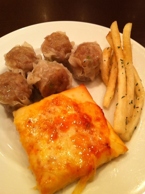再度”サラダ”に”ピザ”&”フライドポテト”&”シウマイ”。