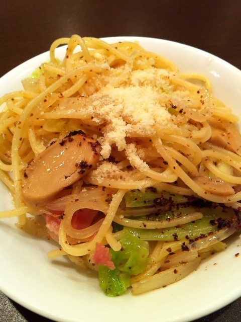 ”冬キャベツとベーコンのスパゲティ”、再び”牛ロース鉄板焼き”。