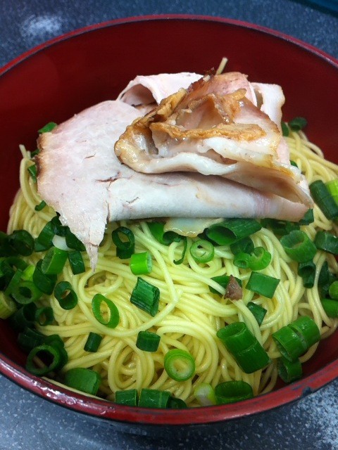 替玉はネギだけでなく、チャーシューまで付いてお得。