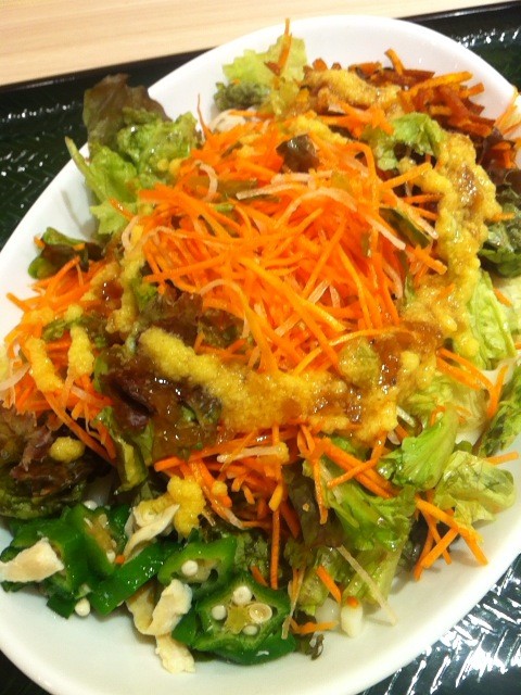 本日はニンジン多めなたっぷり野菜に生姜醤油系のドレッシング。
