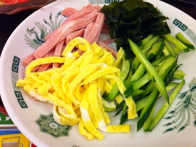 程よい酸味が効いたプリッと麺に玉子、ハムなどのベタな具。