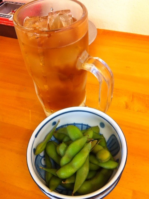 ”ウーロンハイ(300円)”に”枝豆(300円)”。