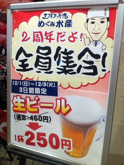 12/3までってことで、まずは”生ビール(250円)”。