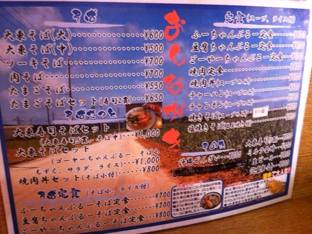 大東そばなどそば系にチャンプルーなど定食ものも。
