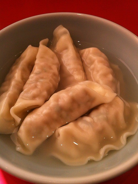 お湯に入ったプリモチっと水餃子。