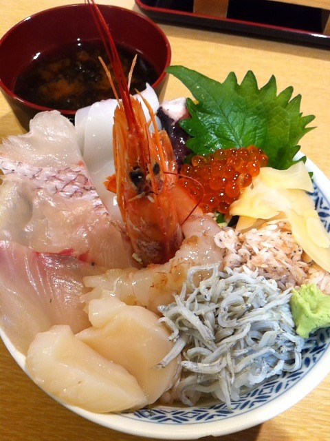 鰻ま屋@三河大塚で、三河産地魚入り海鮮丼(上)。