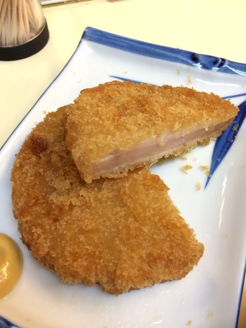 ハムカツはやや厚めのハムでベタなタイプ。
