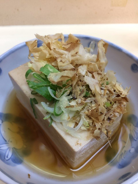 醤油出汁で煮込まれた湯豆腐。
