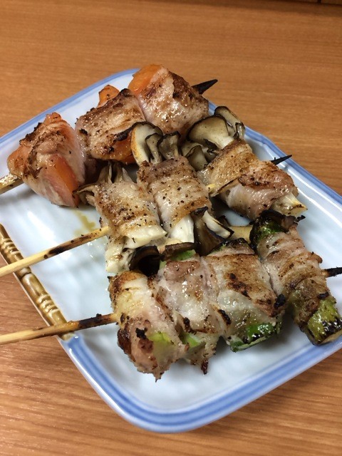 つまみは肉巻串から・・・
