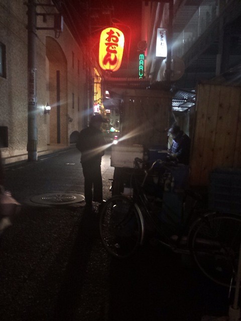 中洲の雑居ビル街にポツンとあるおでん屋台。