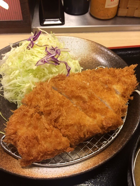厚切りロースカツに千切りキャベツ。