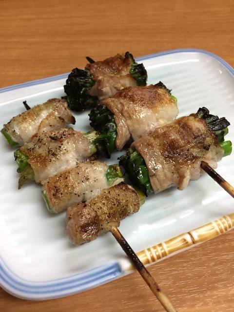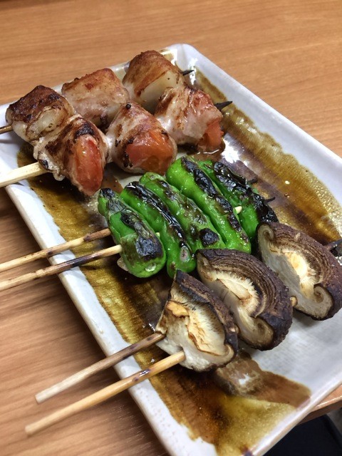 巻いた肉と野菜が絶妙な串。