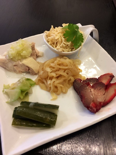 蒸し鶏やフレッシュザーサイ、ハムなど6種。
