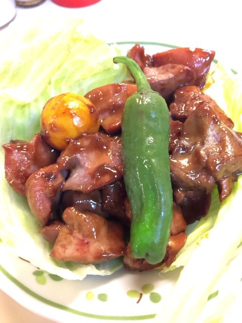 つまみをもう一品”鳥もつ煮(350円)”。