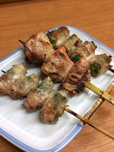 ”肉巻万能ねぎ、かわ、タン、肉巻大葉、肉巻トマト、肉巻オクラ”。