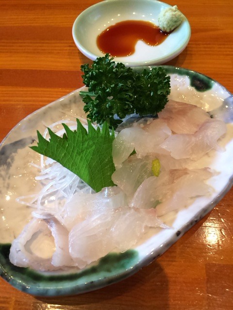 つまみは”まこがれいさしみ(480円)”。